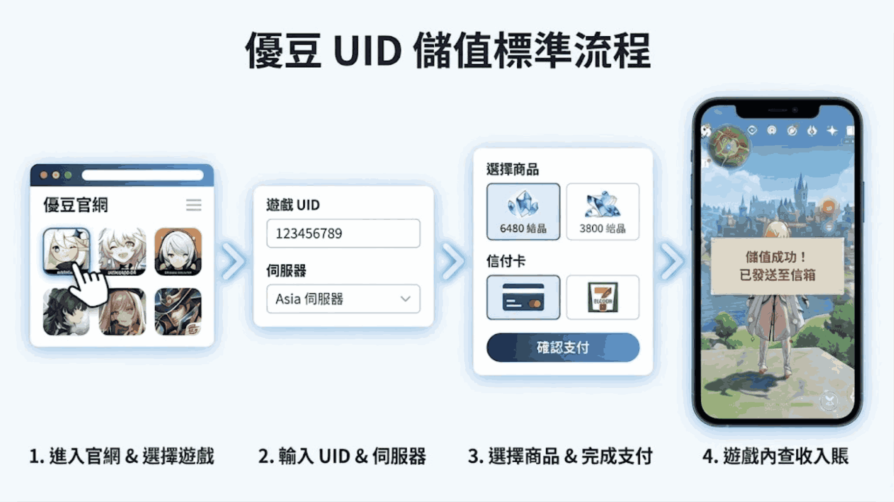 以下是我們為您準備的 UID 儲值流程圖,讓您一目了然: