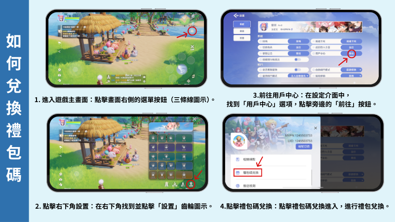 - 點擊禮包碼兌換:點擊禮包碼兌換進入,進行禮包兌換。