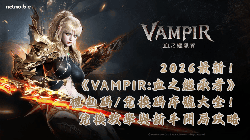 對於熱愛暗黑奇幻MMORPG的手遊玩家來說,由 Netmarble(網石)打造的最新力作《VAMPIR:血之繼承者》絕對是近期的討論焦點。想要在開局快速提升戰力、獲取珍稀資源?輸入官方最新釋出的「禮包碼」與「兌換碼」絕對是無課與微課玩家的最佳捷徑!